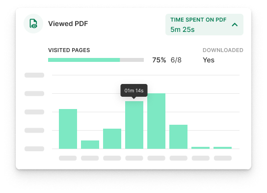 Measure engagement to improve the effectiveness of your documents. Identify data and metrics about how your documents are accessed, viewed, and used: Number of views, time spent on each page, etc.